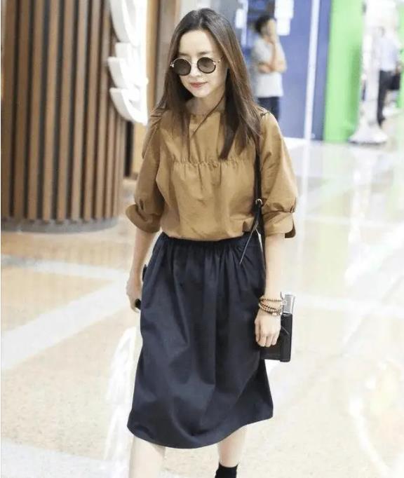 黑色半身裙,真的是每个女生衣橱里的必备款。董洁选的这条裙子长度刚刚好,能遮住大腿上的肉肉,又不会显得拖沓。配上美拉德色上衣,上浅下深,视觉上拉长了身材比例。选黑色半身裙的时候,版型很重要。梨形身材的姐妹适合A字裙,腿型直的姐妹就选直筒裙。想要更显高的话,就选高腰款,再搭个短款上衣,大长腿效果立马出来。